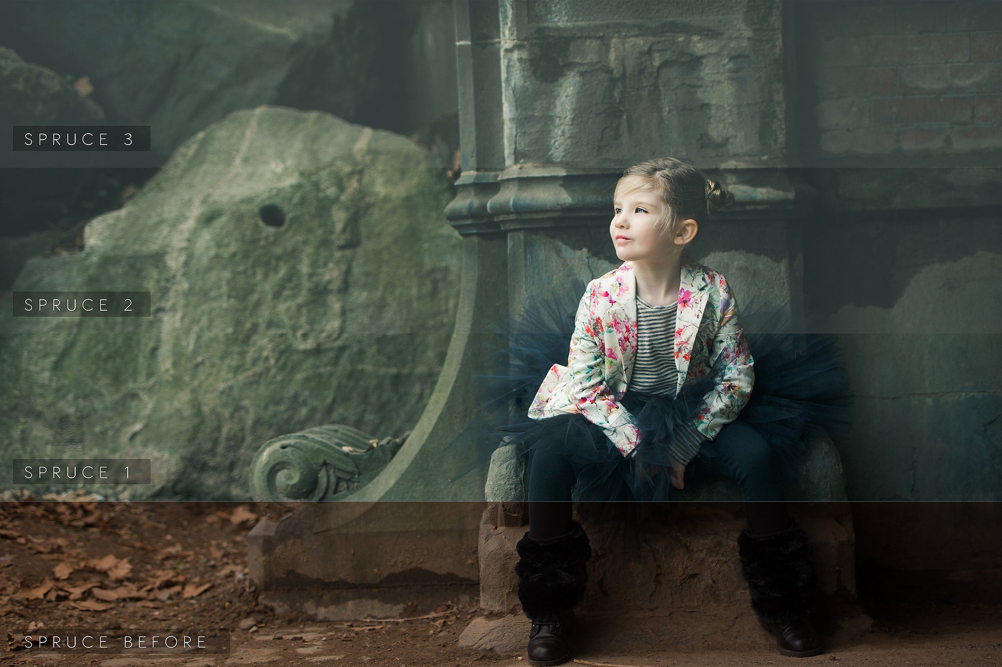 Spruce - Lift you image with an old school film look that lightly plays with your yellows and green. Another great preset to use if you're shooting in the woods. This one is a little slice of glittery heaven. Warms and shines.